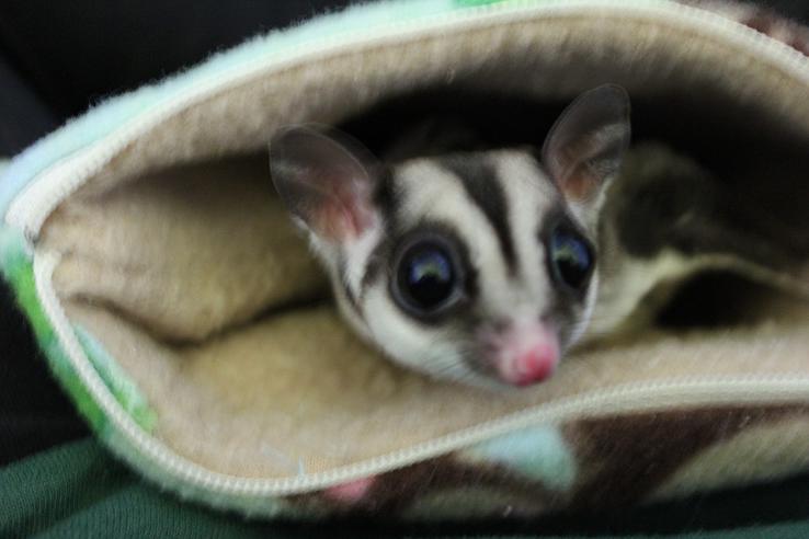 Feisty is doing QC on my first ever home-made parachute pouch!