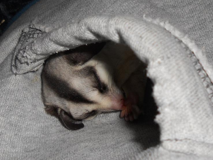 Meiko snug as a bug sleeping in barrel of monkeys lid.