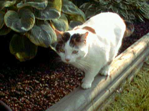 Muffin, showing what a good "copycat" she was, posing next to a ceramic tiger.