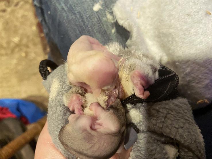 My female glider just had a set of joeys come OOP last night. I don’t have lineage but the person I got them from said they are not related. I’m not breeding to make any profits but for personal and family only. My question here is can anyone tell me what color variations I have here. Beat pics I could get at this time. But you’ll see mom is a standard gray and one baby is white and the other has gray markings.